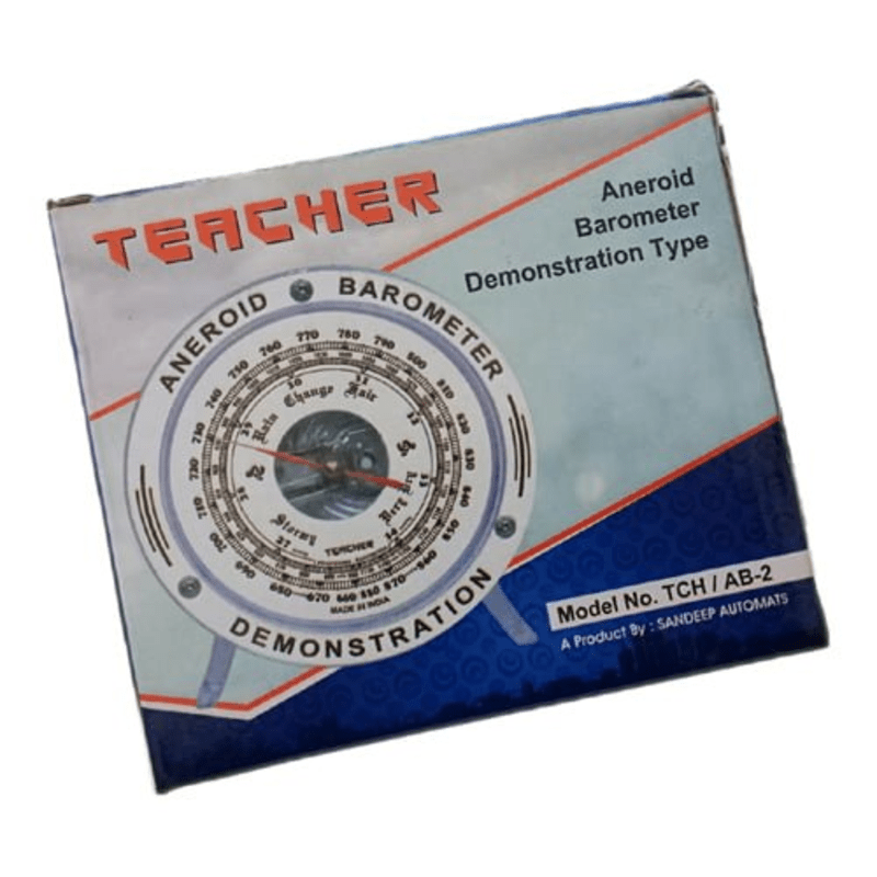 The Aneroid Barometer TCH/AB-2 is a precision instrument used to measure atmospheric pressure without the use of liquid. It operates based on the principle of a flexible metal capsule that expands or contracts with changes in air pressure. The device features a clear dial for easy reading and is designed for educational demonstrations, making it suitable for physics labs.
