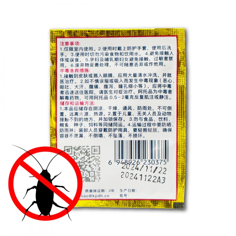 Dahao Cockroach Killing Bait Powder is a powerful and effective solution for eliminating cockroach infestations in both residential and commercial settings. It employs a unique, long-lasting formula that targets cockroaches' feeding habits, leading to their demise and preventing future infestations.