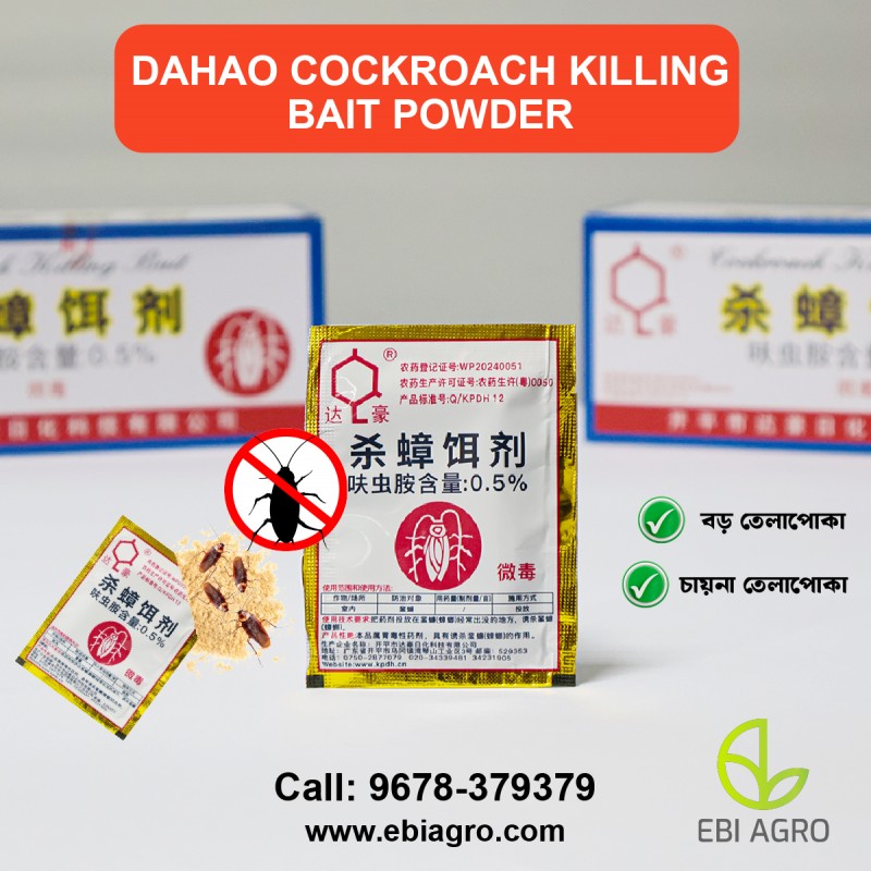 Dahao তেলাপোকা নিধনকারী বেইট পাউডার একটি শক্তিশালী কীটনাশক যা বাড়ির এবং বাণিজ্যিক স্থানে তেলাপোকার উপদ্রব দূর করতে ব্যবহৃত হয়। এটি বিষাক্ত পদার্থ দিয়ে তৈরি যা তেলাপোকাকে আকৃষ্ট করে এবং তাদেরকে মেরে ফেলে। এই পণ্যটি তার কার্যকারিতা